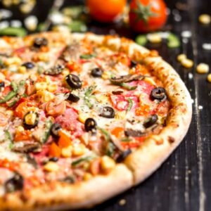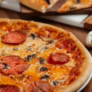 Salsa pomodoro, queso mozarella, pepperoni, salami, jamón, morrón, champiñon, cebolla y aceituna